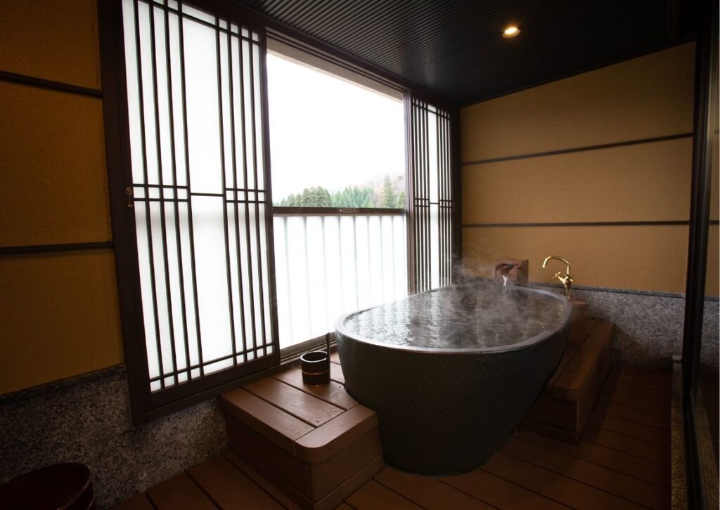 露天風呂からは庄川を望むことができます。